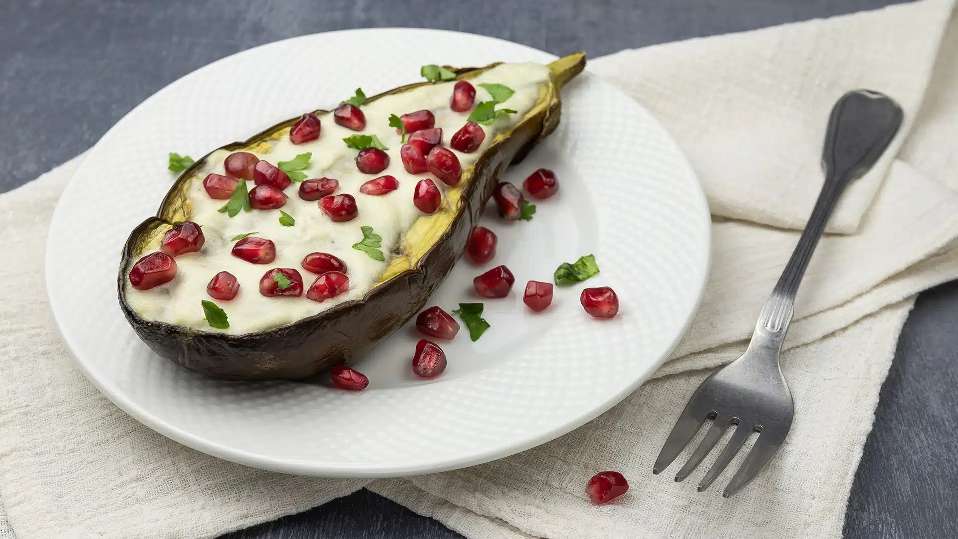Öncelikle patlıcanları ocakta ya da fırında közleyip uzunlamasına kesin ve iç kısımlarını çıkarıp ince ince doğrayın. Ayrı bir kapta süzme yoğurdu ezilmiş sarımsak ve tuz ile karıştırarak pürüzsüz bir kıvam elde edin. Doğradığınız köz patlıcanları bu yoğurt karışımına ekleyip güzelce harmanlayın. Hazırladığınız karışımı iç kısımlarını çıkardığınız patlıcanların içine doldurun. Üzerine nar tanelerini ve iri kırılmış cevizleri serpiştirin. Son olarak zeytinyağı gezdirerek mezeyi servis etmeye hazır hale getirebilirsiniz.