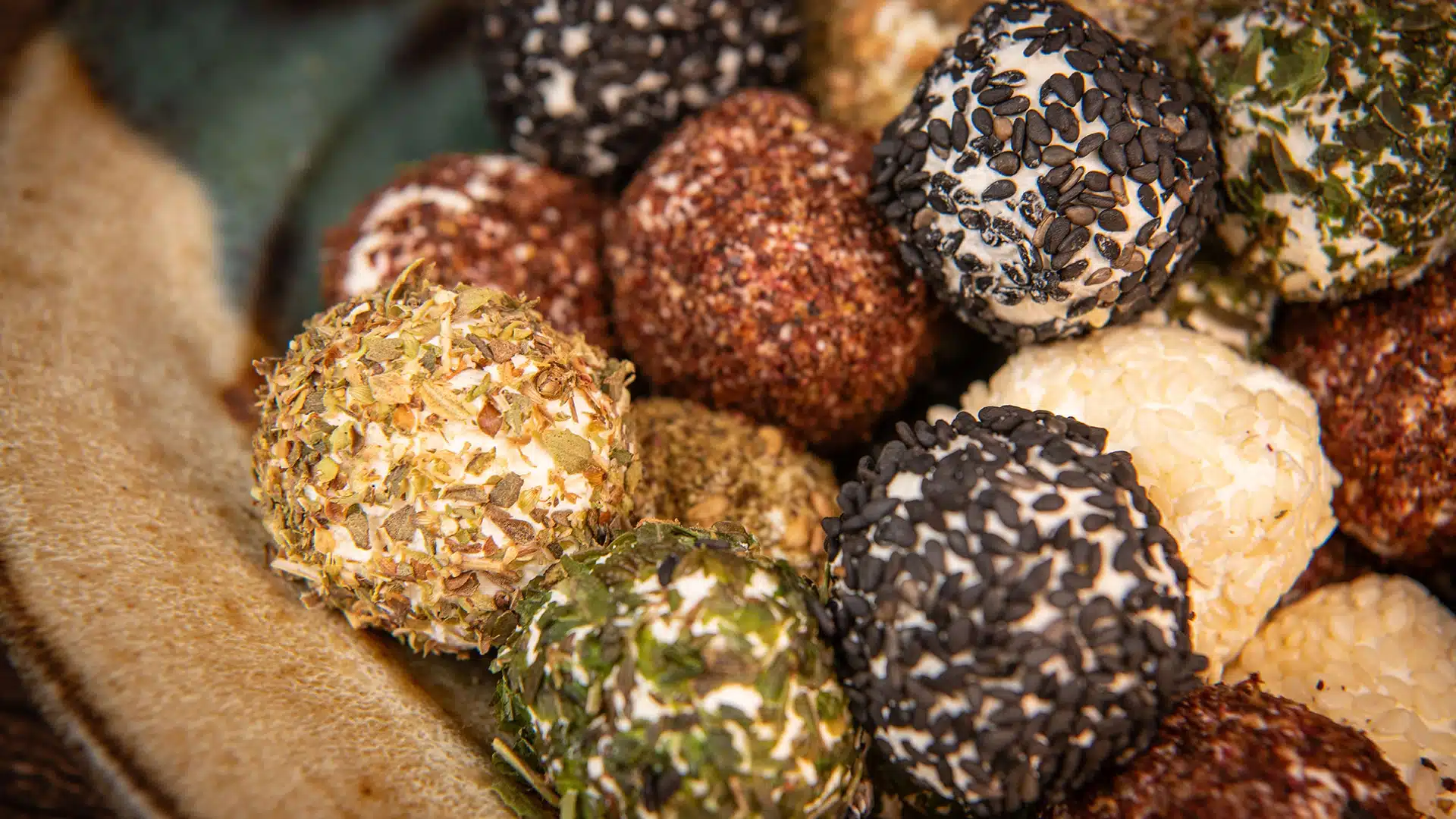 Beyaz peyniri bir kaseye alarak çatalla iyice ezin, üzerine labne peynirini ekleyip yoğrulabilir, hafif yumuşak bir kıvam elde edene kadar karıştırın. Oluşan peynir karışımından ceviz büyüklüğünde parçalar koparıp avuç içinde yuvarlayarak toplar hazırlayın. Ayrı tabaklara dereotu, maydanoz, çörek otu, susam ve kırmızı toz biberi paylaştırın. Hazırladığınız peynir toplarını bu karışımların içine tek tek bulayarak her birini farklı renk ve dokuda kaplayın. Dilerseniz servis öncesinde her topa birer kürdan batırarak şık ve pratik bir sunum oluşturabilirsiniz.