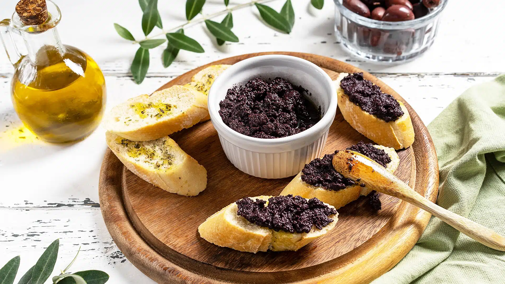 Çekirdeksiz siyah zeytinleri, sarımsağı, zeytinyağını, limon suyunu ve dilediğiniz miktarda kekik ile karabiberi rondoya alın ve sürülebilir kıvamda, koyu bir zeytin ezmesi elde edene kadar çekin. Bu sırada baget ekmek dilimlerini veya küçük karelere böldüğünüz tost ekmeklerini fırında ya da tavada hafifçe kızartarak kıtırlaştırın. Kızarmış ekmekleri servis tabağına alıp üzerlerine hazırladığınız zeytin ezmesini bolca sürün. Arzu ederseniz bazı dilimlerin üzerine küçük bir parça beyaz peynir ve ortadan ikiye kesilmiş cherry domates yerleştirerek daha renkli ve iştah açıcı bir sunum hazırlayabilirsiniz.